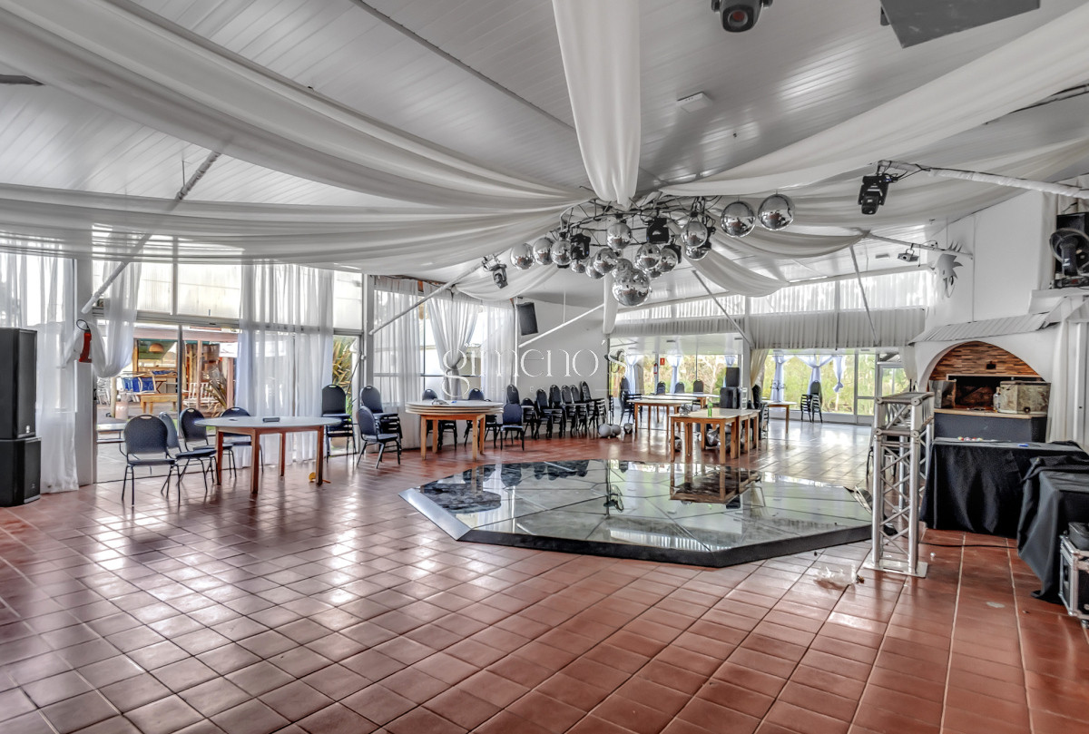Gran salón de fiesta con capacidad de 250 personas sentadas, cuenta con un parrillero cerrado, cocina industrial y baños para los invitados.